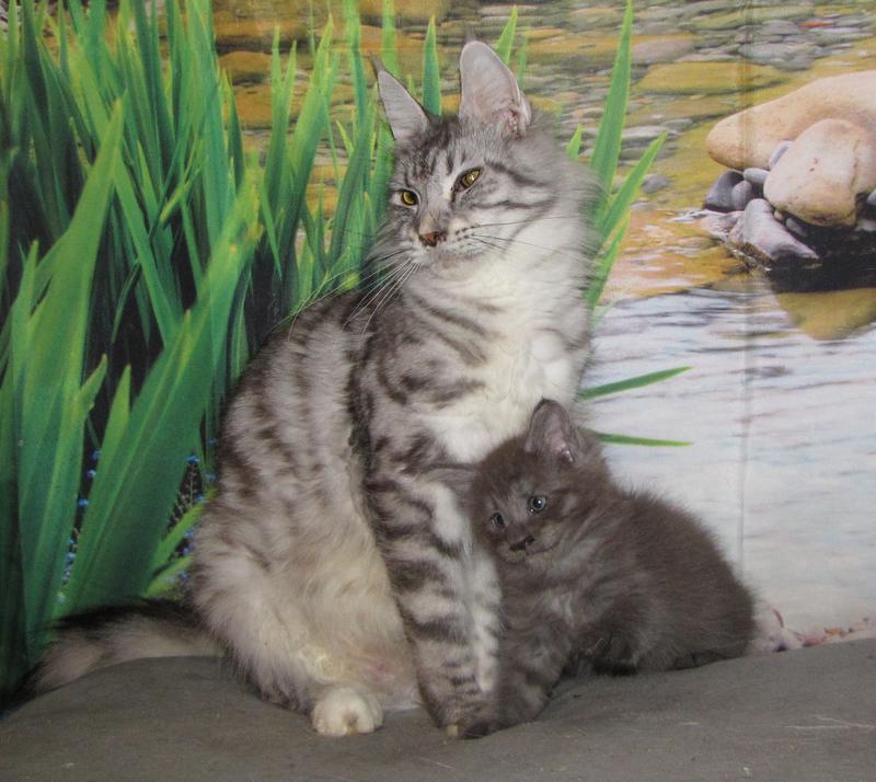 black silver spotted Maine Coon: mom of our Mulby